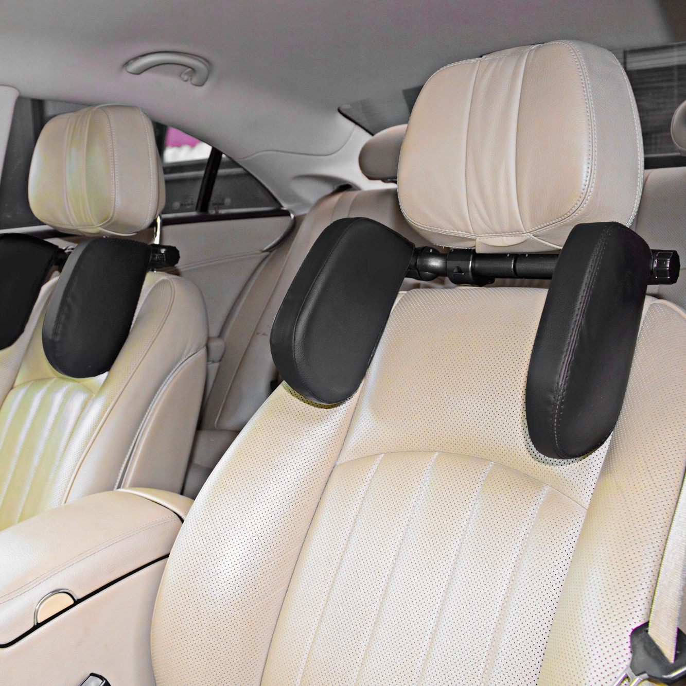 - Подушки оснащены регулируемыми крючками и пружиной, благодаря которой вы идеально соответствуете интервалу монтажа с подголовниками в вашем автомобиле