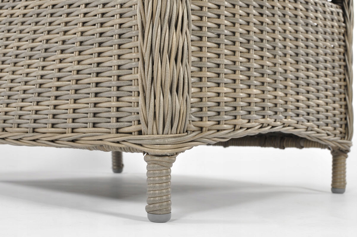 Кресло DONATA с подставкой для ног изготовлено из высококачественного техноротанга. Устойчив к погодным условиям и механическим повреждениям. Тщательно плетеные края подлокотников и подставка для ног округлой формы придают мебели неповторимый характер.