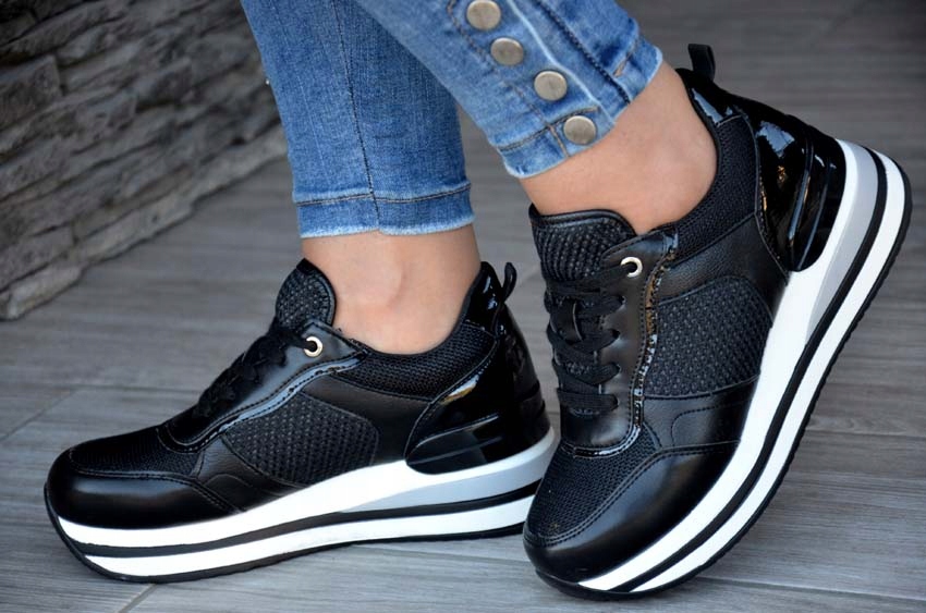 Удобная женская спортивная обувь черная платформа кроссовки густое дно