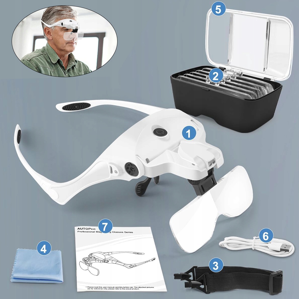 👑 Удобный сменный ремешок на голову - Благодаря эргономичному ремешку лупа надежно фиксируется на голове даже при длительном использовании. Это решение предотвращает скольжение и повышает комфорт.