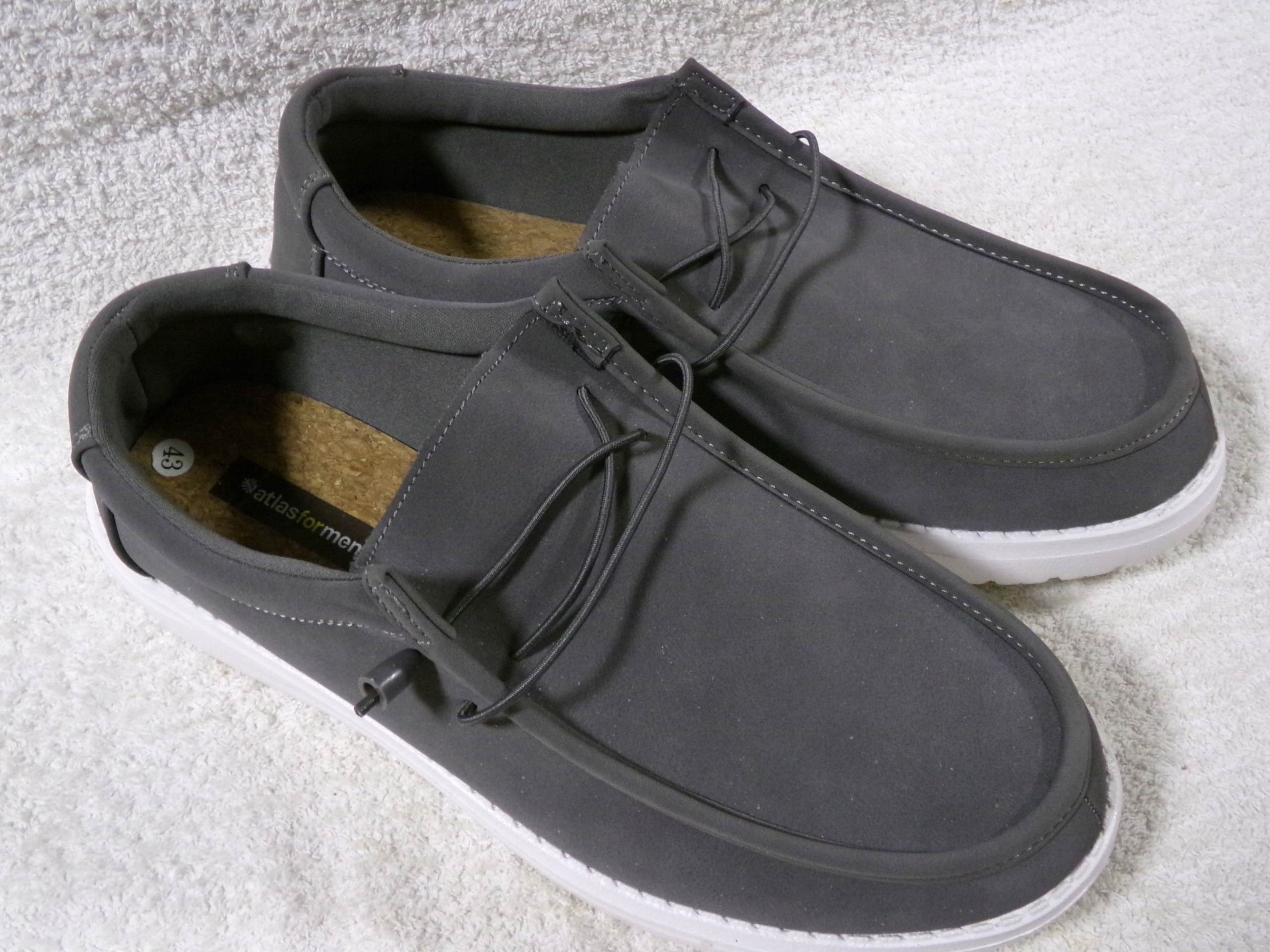 Нет ничего лучше для расслабляющей прогулки, чем эти мокасины! Изготовленные из искусственной кожи (гладкой и замши), они имеют набивку вокруг лодыжки для комфорта и долговечности. Практично и легко надевать благодаря эластичным шнуркам с регуляторами и стопорами. Гибкая, легкая и ребристая подошва из ЭВА гарантирует хорошее сцепление с землей. Верхний слой: 100% синтетика (полиуретан). Подкладка: трикотаж, 100% полиэстер. Цвет: серый, размер 43, длина вставки 28,5 см. Очень хорошее состояние, без повреждений, цена в магазине 300 злотых.