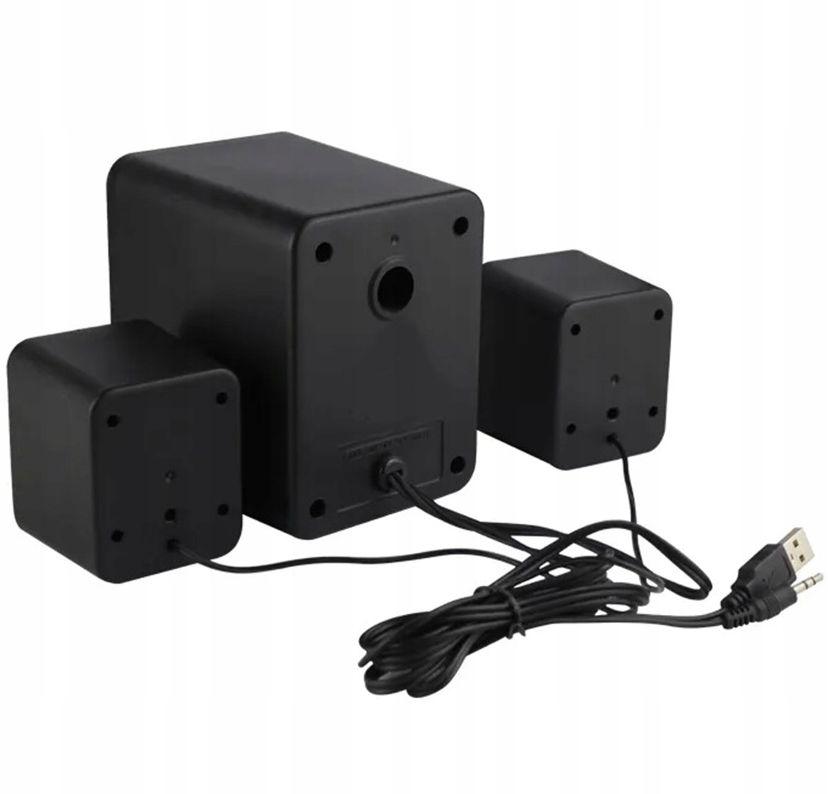 Компактные компьютерные динамики Стерео + Сабвуфер (система 2.1) номинальной мощностью 5 Вт + 2x 3 Вт, что в сумме дает 11 Вт! Все, что вам нужно для их питания, — это обычный порт USB типа A! Они идеально подходят в качестве дополнения к колонкам ноутбука или в качестве дополнительных колонок для телефона, MP3-плеера или других небольших аудиоустройств. Благодаря использованию технологии USB и питанию 5 В они портативны и полностью независимы от источников электроэнергии! Для их запуска достаточно обычного зарядного устройства или зарядного устройства для телефона и любого аудиоустройства с разъемом мини-джек 3,5 мм!