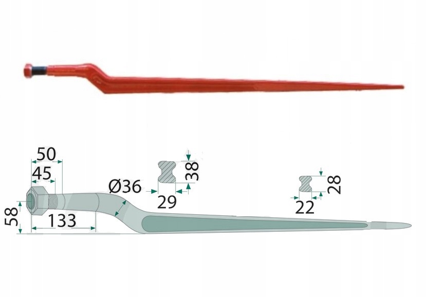 Кованые вилы ЗУБЧАТЫЙ ПОГРУЗЧИК ИЗОГНУТЫЙ + ВТУЛКА 110 мм x диаметр 45 мм