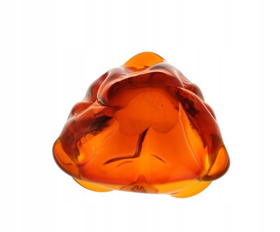 Оранжево-желтая пепельница для трех сигарет, изготовлена из натриевого стекла ручной формовки. Произведено на отечественном стекольном заводе «Зомбковице» в Домбровой Гурнице. 2-я половина ХХ век