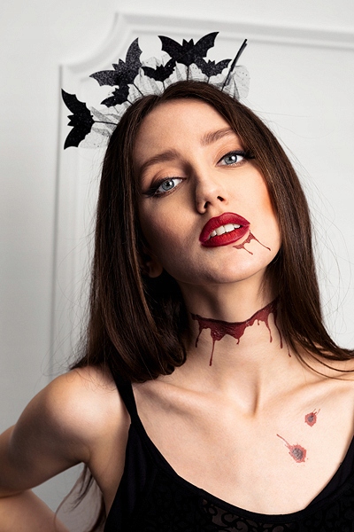 Zęby kły wampira wilkołaka sztuczna krew strój wampira diabła na Halloween