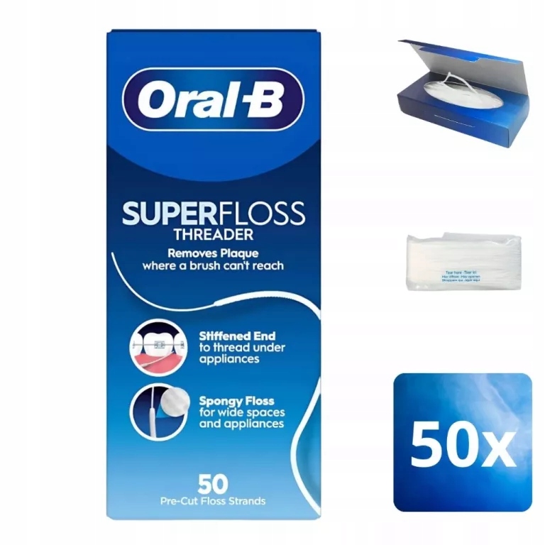 Зубная нить ORAL‑B SUPER FLOSS для ортодонтических брекетов и мостовидных протезов, сегментная зубная нить в новой версии