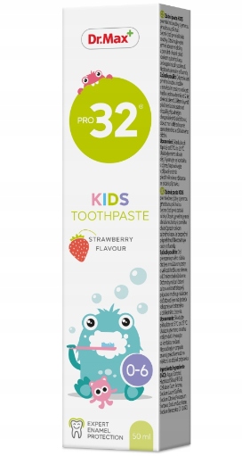 Pro32 Зубная паста Дети доктор Макс, зубная паста для детей, 50 мл b> - косметика с клубничным вкусом, предназначенным для ухода за зубами молока. Аккуратно очищает первые зубы детей. Он содержит очень маленькие абразивные молекулы и помогает защитить ваши зубы от кариеса. Безопасно, если вы глотаете. Он не содержит сахар и фторид.