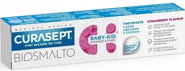 Хорошая зубная паста для детей должна, прежде всего, обеспечить эффективную защиту от гумана, укрепить эмаль молочных зубов и поддерживать здоровое развитие твердых зубов. благодаря этому молоко и постоянные зубы очень хорошо защищены от кариеса, эрозии кислотной эмали и гиперчувствительности. Паста имеет низкий уровень истирания и приятный клубничный вкус. Он содержит 1000 ч / млн фторид.