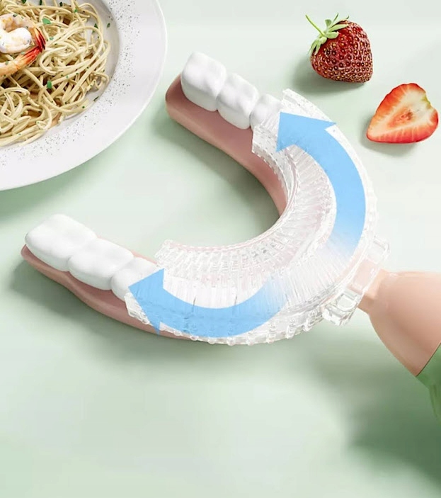 - эргономичная насадка U-образной формы, подходящая по форме и механике строения детских зубов