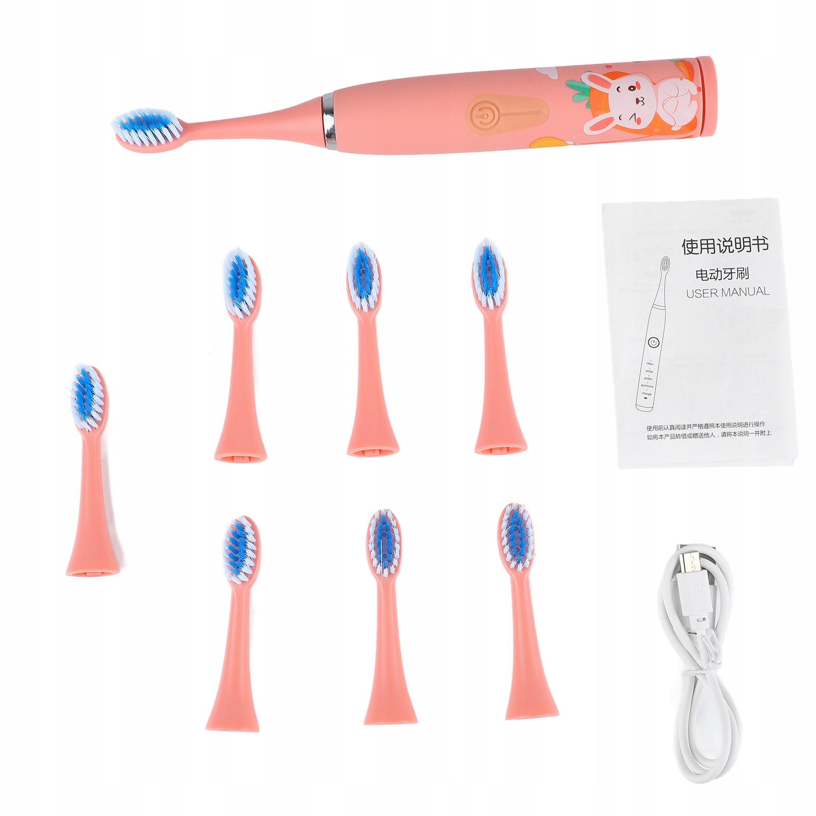 Электрическая зубная щетка детская, 4 передачи, 8 насадок, зарядка через USB. ЗВУКОВАЯ ЗУБНАЯ ЩЕТКА ДЛЯ ДЕТЕЙ, ЭЛЕКТРИЧЕСКАЯ, КРОЛИК, КРЫШКА