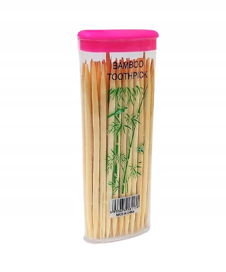 Зубочистки из бамбука в практичной пластиковой коробочке. Контейнер имееткрышку, позволяющую дозировать съемные зубочистки.