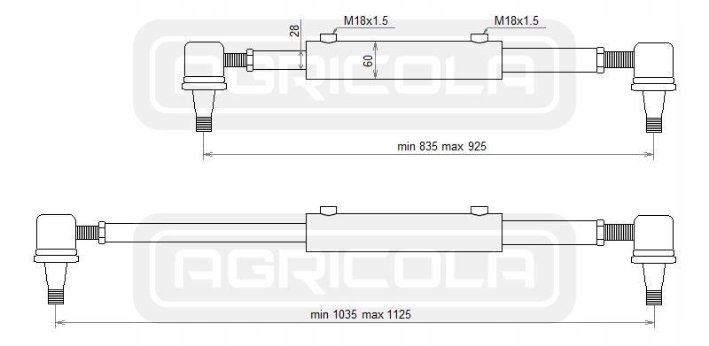 Общая длина полного привода с суставами зависит от степени вытягивания отдельных частей набора. В сложном положении варьируется от 835 мм до 925 мм, в положении, распределенном от 1035 мм до 1125 мм: