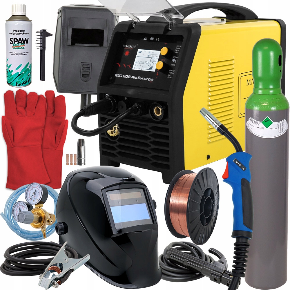 ПОЛУАВТОМАТИЧЕСКАЯ СВАРКА - MIGOMAT - MAGNUM MIG 208 ALU SYNERGIA - Сварочный комплект MAG с цилиндром 8 л + козырек