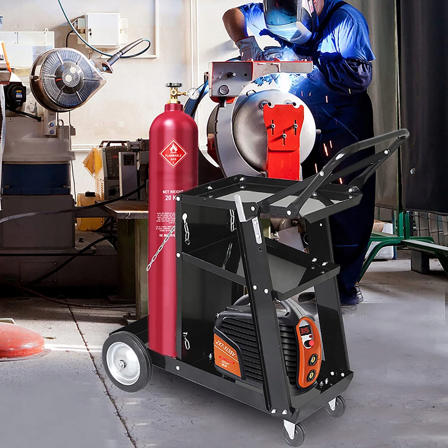 Профессиональная сварочная тележка известного бренда Kraft&Dele — идеальное решение для транспортировки комплектов для MIG/TIG или плазменной сварки, а также для любого использования в мастерских.
