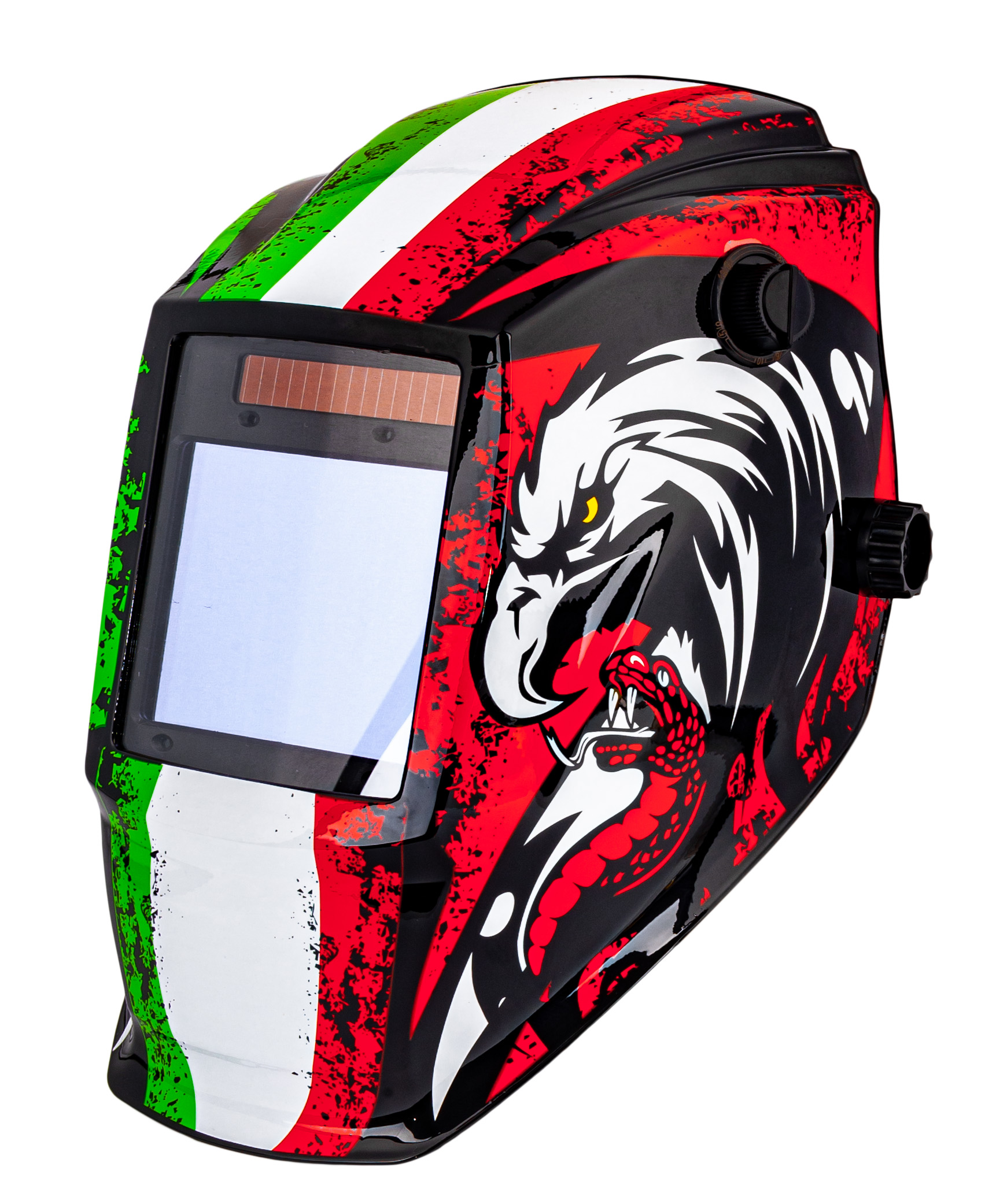 Защищает пользователя от вредного излучения, возникающего во время сварки, а также от искр и брызг. Специальный датчик, помещенный в кассету фильтров, автоматически определяет начало процесса сварки, активируя функцию самозатемнения. После окончания работы фильтр автоматически возвращается в освещенное состояние. Фильтр питается от внутренних батарей, которые автоматически заряжаются от солнечных батарей.