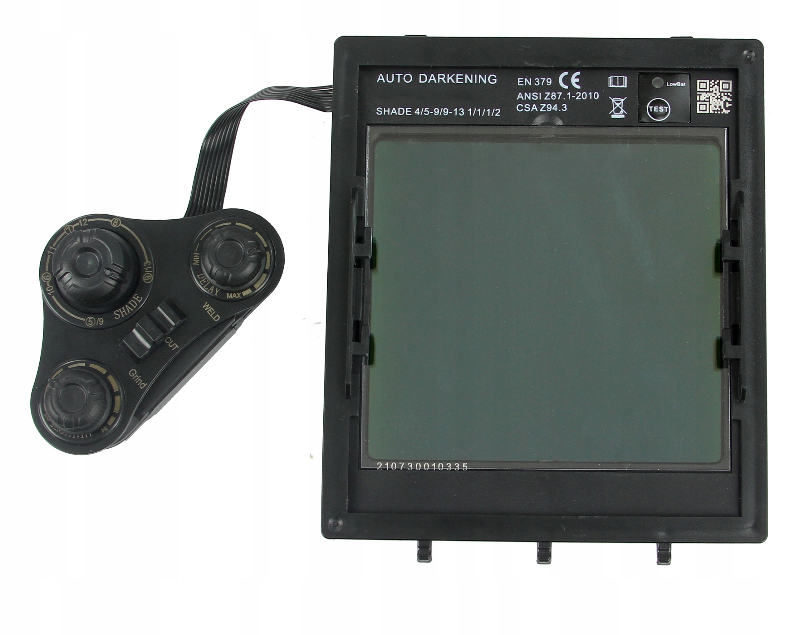 Защищает пользователя от вредного излучения, образующегося во время сварки, а также от искр и брызг. Специальный датчик, размещенный в кассете фильтра, автоматически определяет начало процесса сварки, активируя функцию автоматического затемнения. После окончания работы фильтр автоматически возвращается в освещенное состояние. Фильтр питается от внутренних батарей, которые автоматически заряжаются от солнечных батарей.
