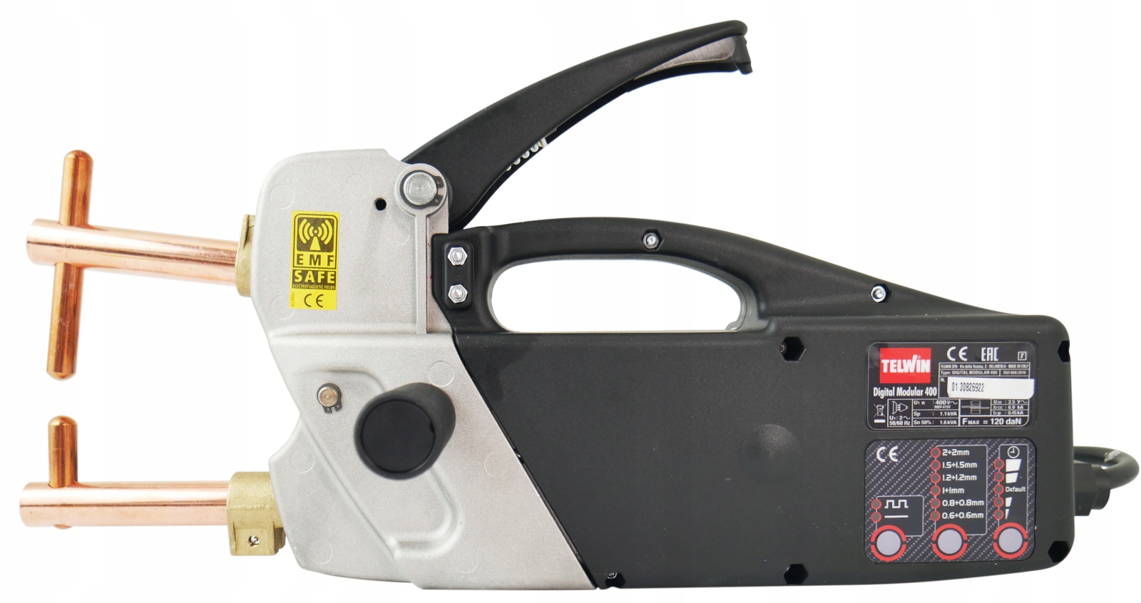 Источник питания 230 В, максимальная мощность 6 кВт. Встроенный регулятор времени сварки.