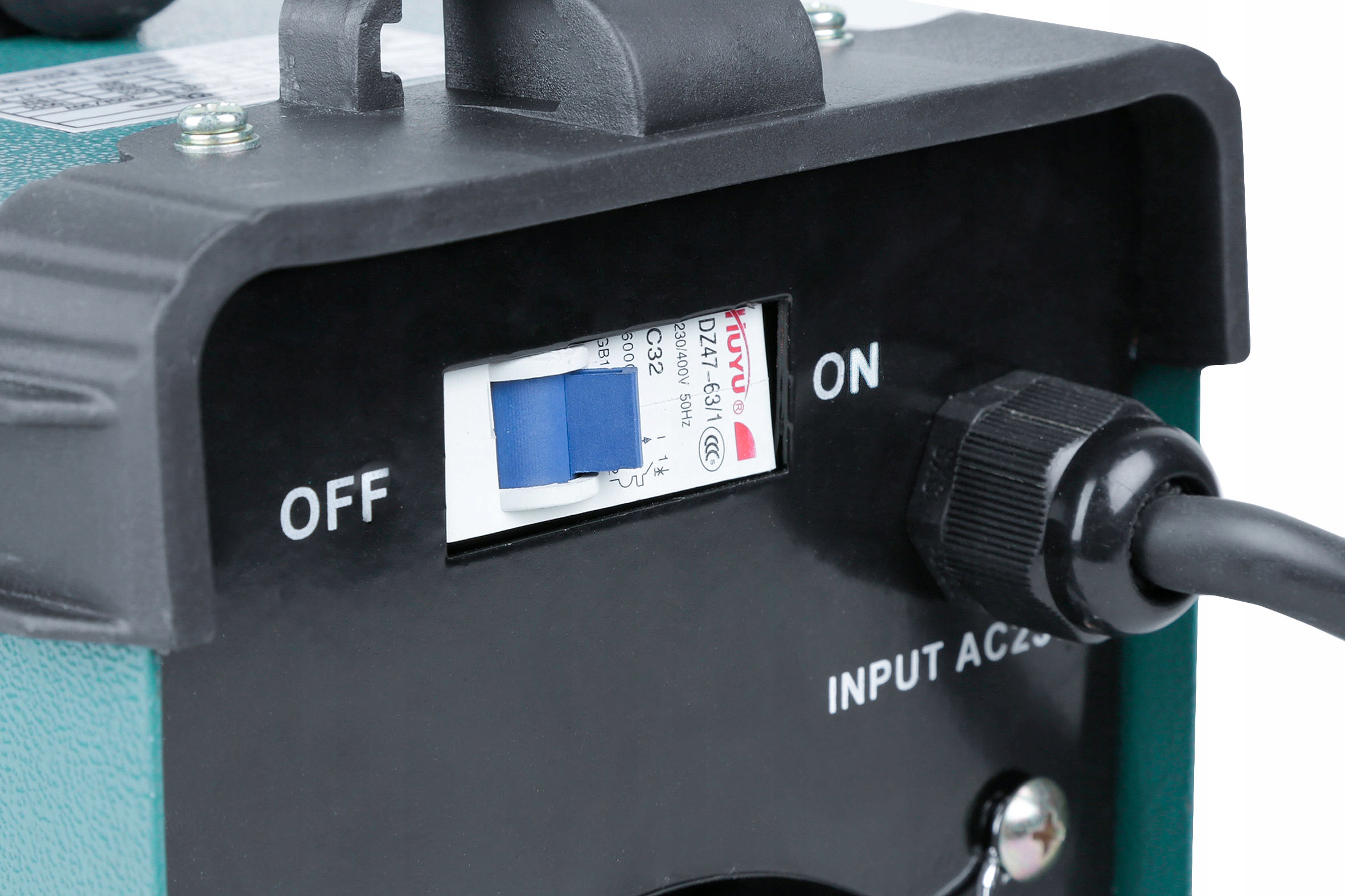 Сварочный аппарат питается от сети 230В, т.е. от обычной розетки, что делает его очень универсальным. Устройство охлаждается большим вентилятором, расположенным в задней стенке, а безопасность повышает установленный термовыключатель, предотвращающий перегрев.
