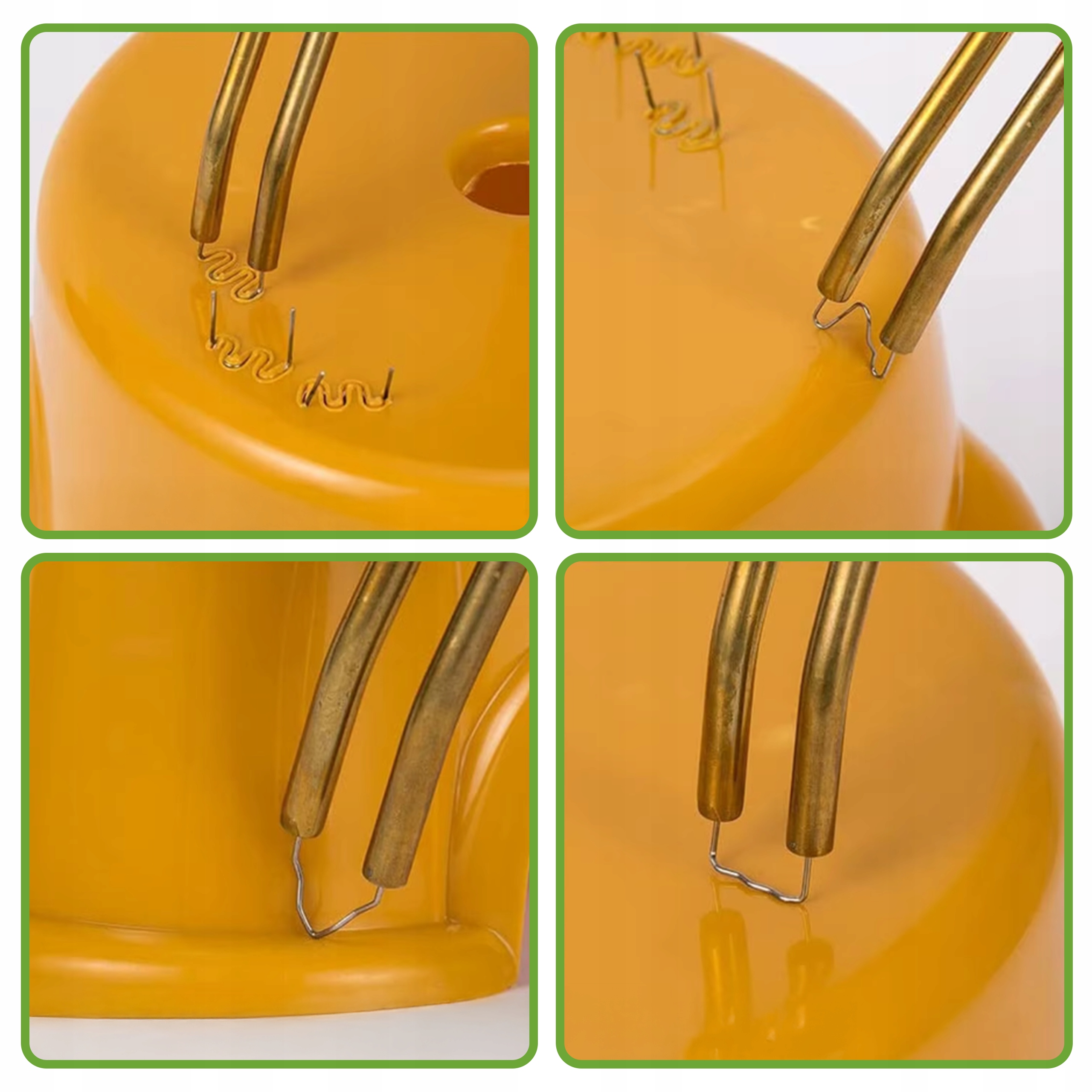Наконечник нагревает скобы примерно до 750°C, обеспечивая быстрое плавление пластика.