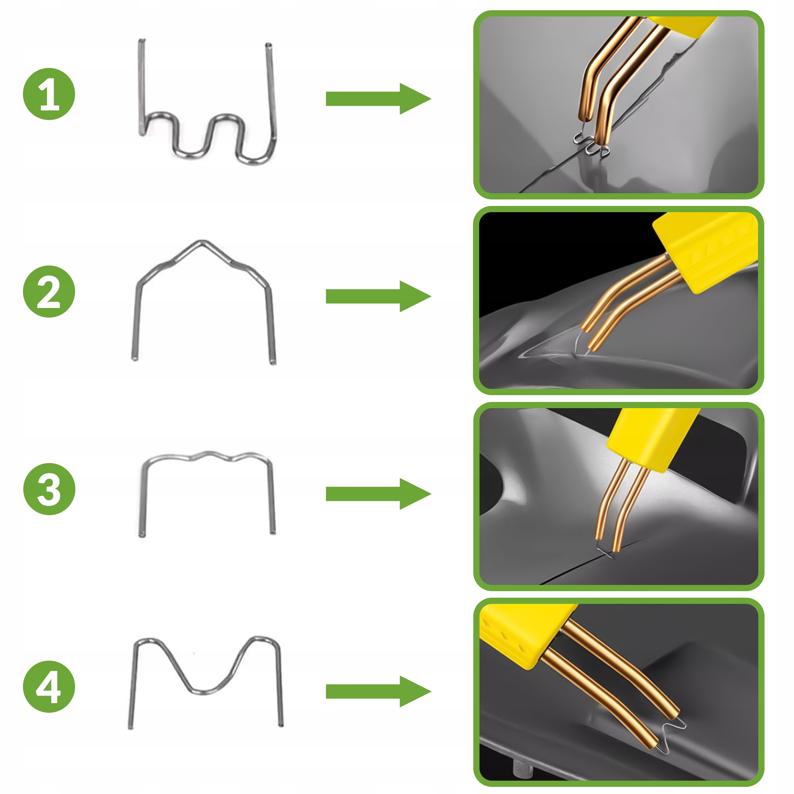 - 4 типа скоб - для прямых, изогнутых и угловых трещин