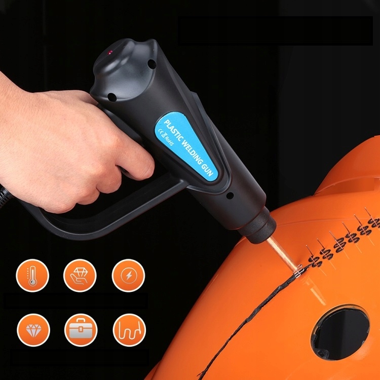 В комплект входят 200 скоб, с помощью которых устройство надежно соединит треснувшие пластиковые элементы, а место соединения будет устойчиво к ударам и скручиванию.