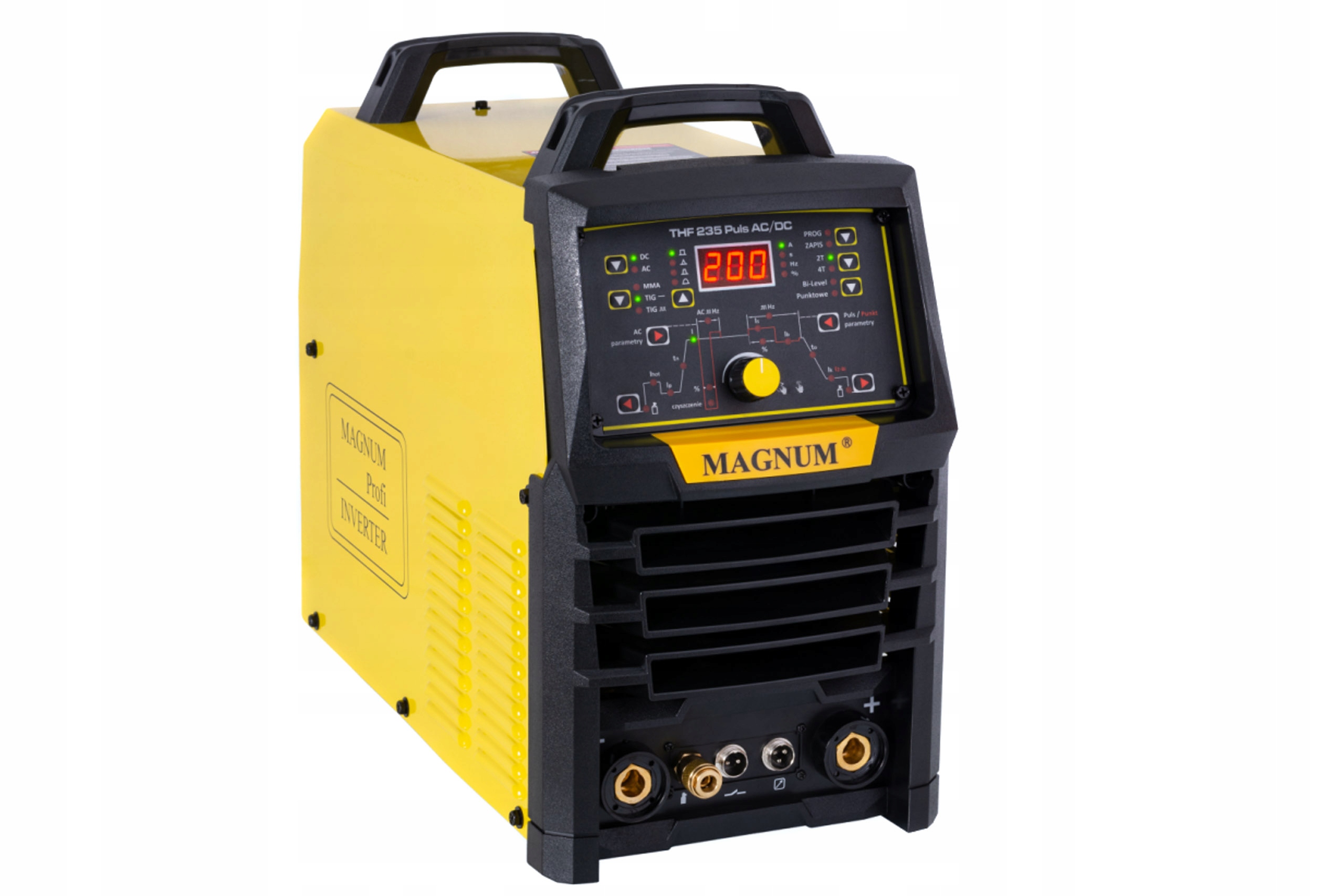 Аппарат THF235 AC/DC PULS от бренда MAGNUM — профессиональный инверторный сварочный аппарат, предназначенный для сварки методом TIG HF ( с бесконтактным зажиганием сварочной дуги) на токе переменном переменного и постоянном постоянном. THF 235 обеспечивает отличные характеристики при сварке алюминия и его сплавов, нелегированной, низколегированной, высоколегированной стали, титана и других свариваемых металлов и сплавов. Устройство также может быть использовано для сварки ММА с использованием легкоплавких покрытых электродов.