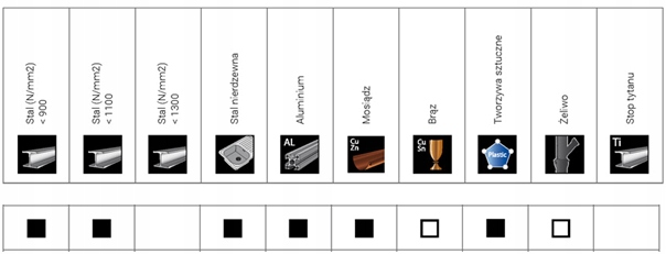 Высокая вязкость и термостойкость, для сверления. в труднообрабатываемых материалах, с прочностью до 1100 Н/мм2.