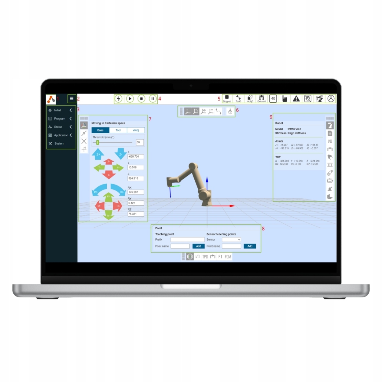 Интуитивный интерфейс позволяет настраивать, добавлять оси и контролировать работу робота в режиме реального времени. Система поддерживает диагностику, анализ данных и оптимизацию бесстолкновительного движения. Встроенные механизмы безопасности защищают данные локально, обеспечивая соответствие промышленным требованиям. Платформа не зависит от операционной системы и не требует установки — работает прямо в браузере.