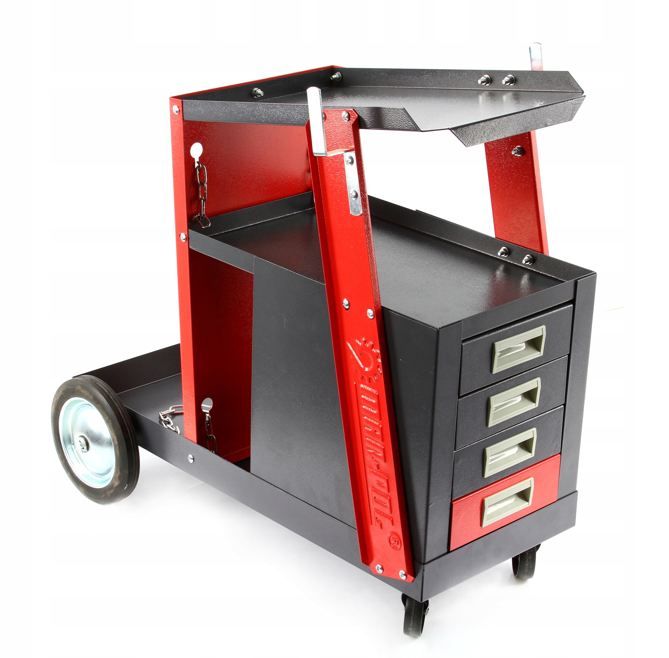Стабильная сварочная тележка с прочной стальной конструкцией и четырьмя дополнительными выдвижными ящиками!