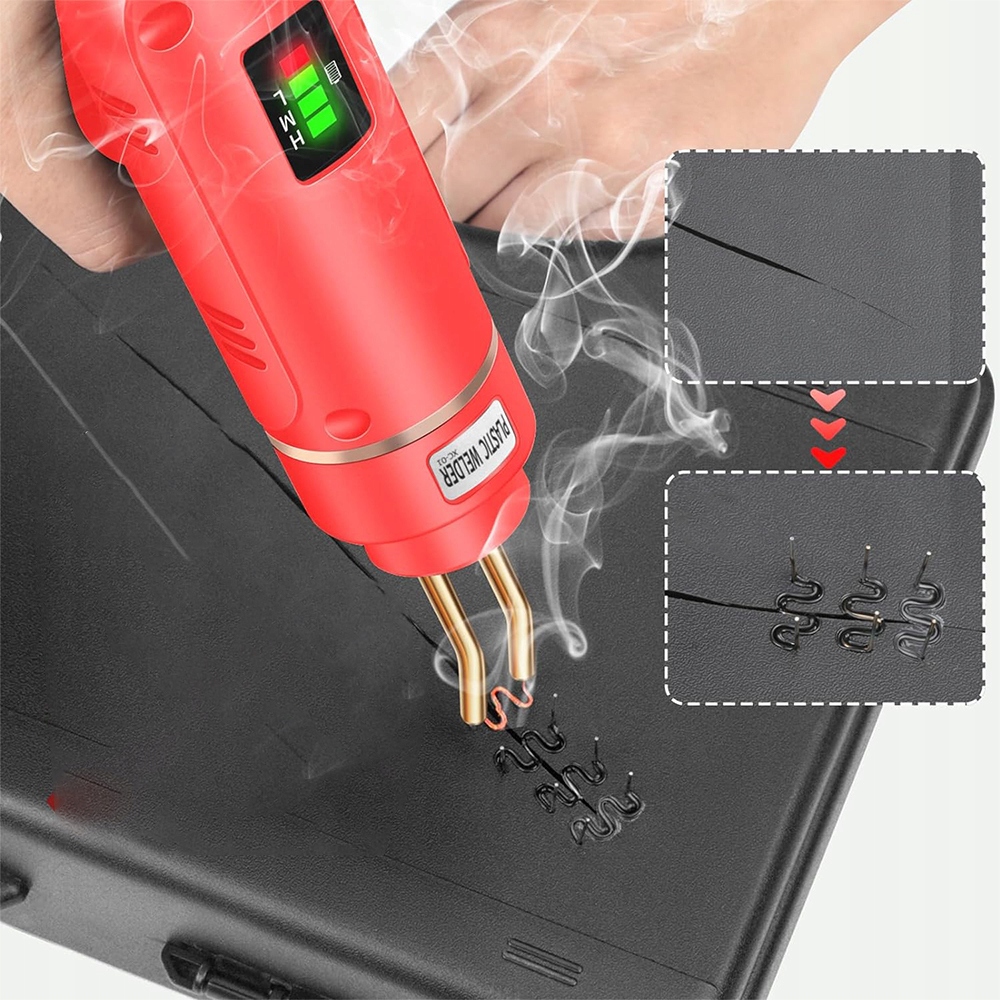 - 200 Вт Сварочный аппарат для пластика является беспроводным и имеет высокопроизводительную литиевую батарею 5000 мАч. , поэтому его легко переносить.