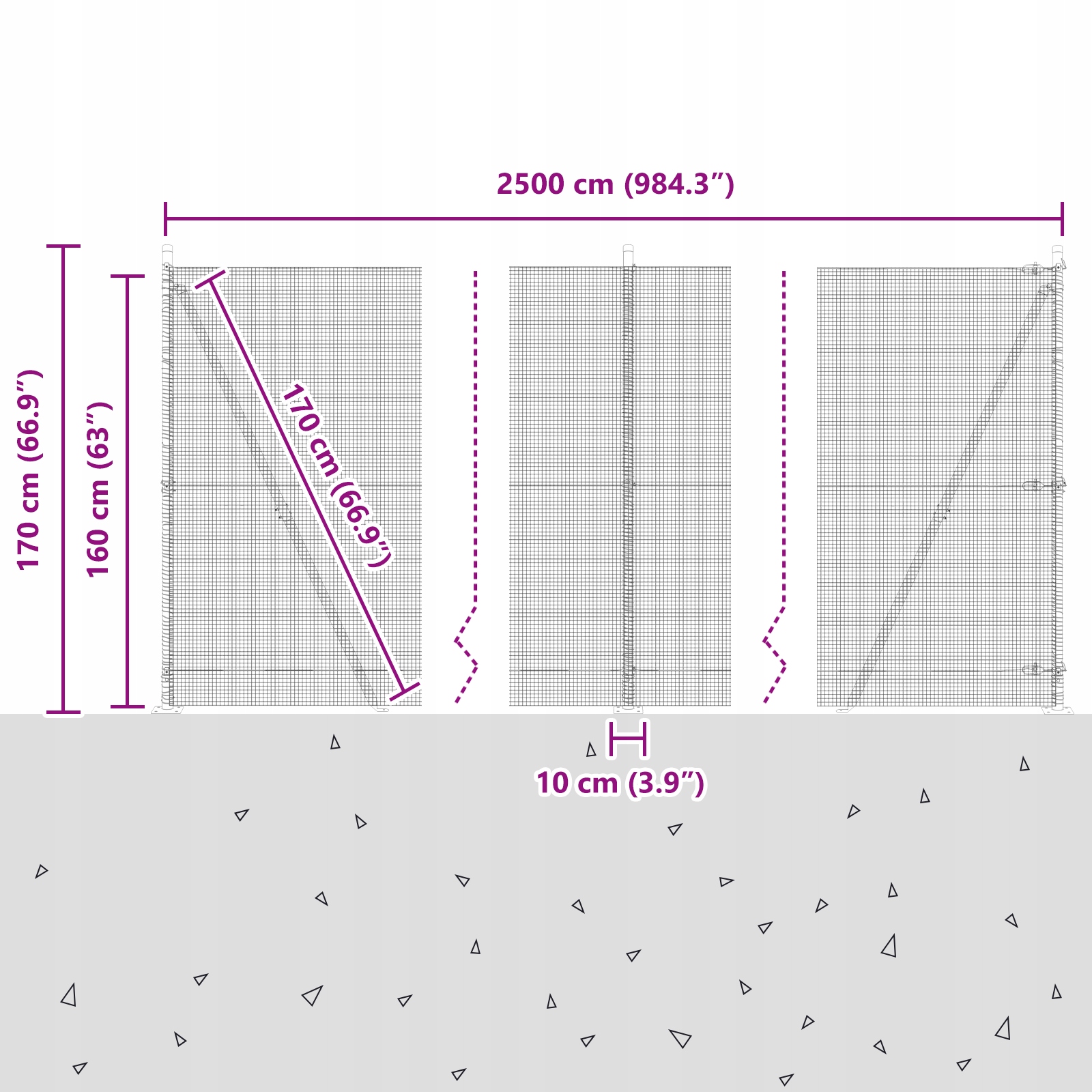 Сварная проволочная забор с 13 колоннами с фланцами 1,6x25 м со сталью порывки