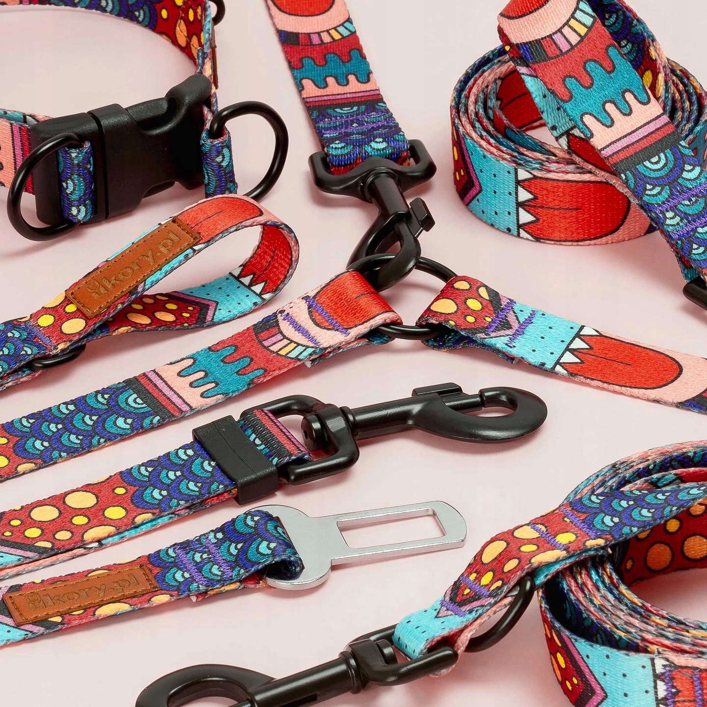 Этот повод - это самый универсальный тип поводка для собаки , он является легким и долговечным , так что идеально подходит для повседневных прогулок по всему городу и многое другое. С одной стороны, у него есть карабинер, который мы прикрепляем к скобкам или воротникам, а на другой удобной ручке - ручке, где был размещен металлический круг - d -ринг, который позволяет прикрепить к поводке поводка для покупателей. Все было сшито с очень сильной двойной ленты, и каждый шаблон был разработан с помощью польского иллюстратора , что делает их уникальными на рынке.