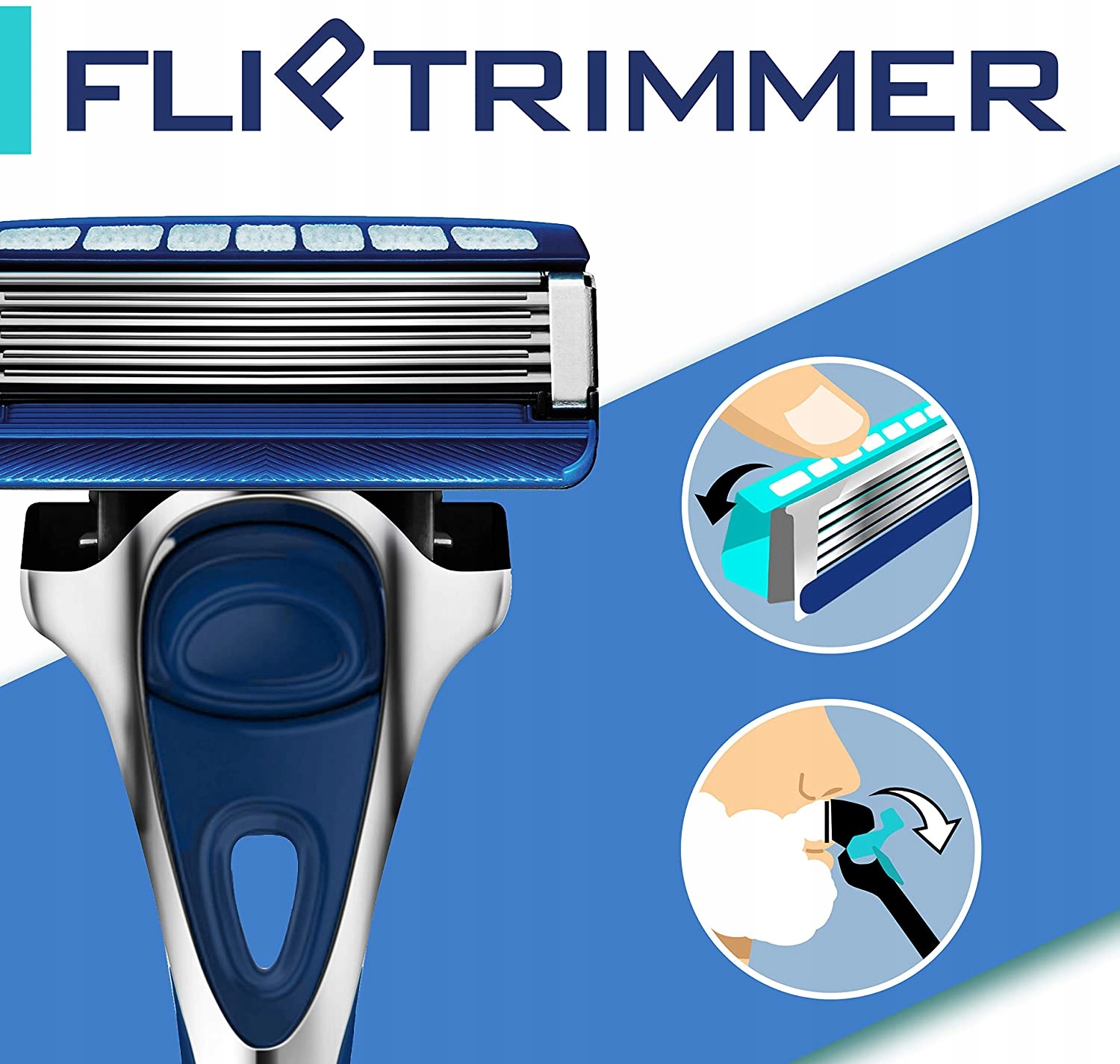 - Наклонный триммер: контейнер с гелем наклоняется, открывая все 5 лезвий, что позволяет легко брить труднодоступные места, например под носом или бакенбардами.