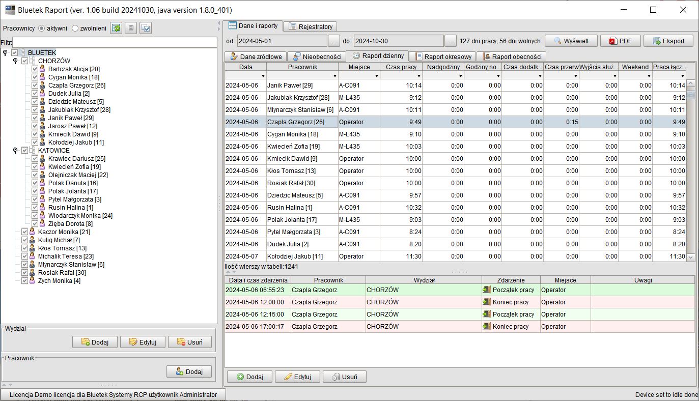 Какие дополнительные функции представляют отчет? H2> - Программа правильно учитывается в рабочее время в случае работы, проходящей через север и в случае повторного начала/ окончания работы за один день.