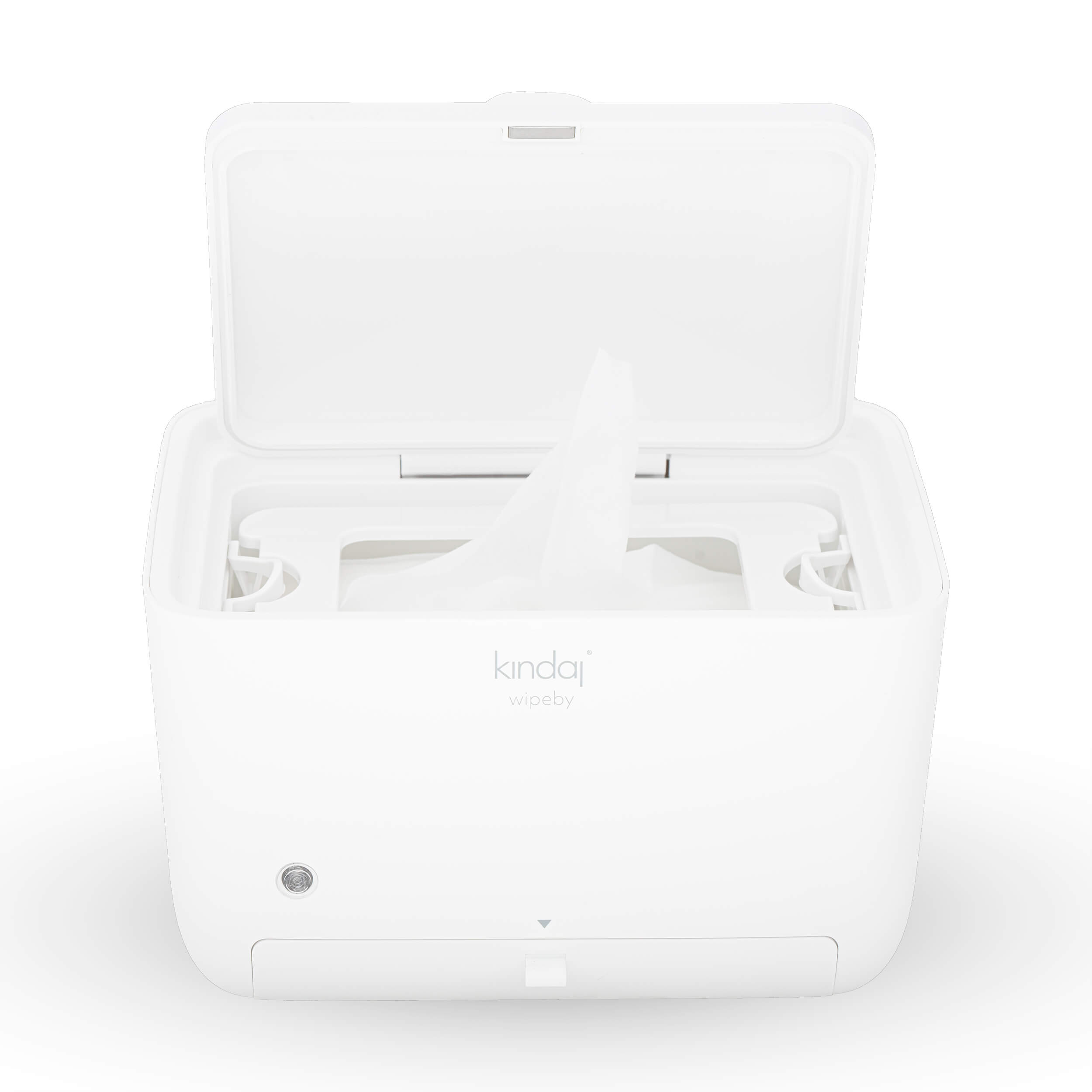 kindaj Wipeby Увлажненные салфетки Wipeby также имеет дополнительный ящик для нагревательных масок на листе. Нагреватель требует подключения контакта и содержит около 100 кусочков увлажненных салфетков. Wipeby сохраняет тепло нагреваемых салфетки, пока вы их не используете. Благодаря замкнутой цепи, он не высушит их в камере.