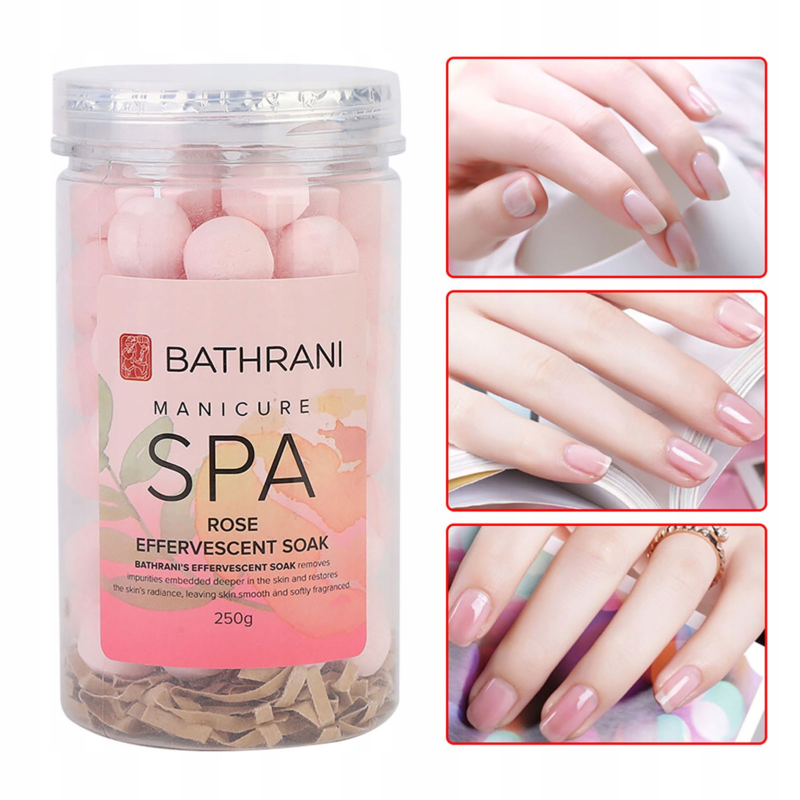 Положите 1-2 шипучих шарика в теплую воду, подождите, пока шипучий шарик растворится, опустите обе руки в теплую воду на 3-5 минут, аккуратно нажмите на кожу вокруг рук и ногтей, очистите кожу рук и смягчите стареющую кутикулу, позволяя рукам полностью впитывать питательные вещества, содержащиеся в шарике.
