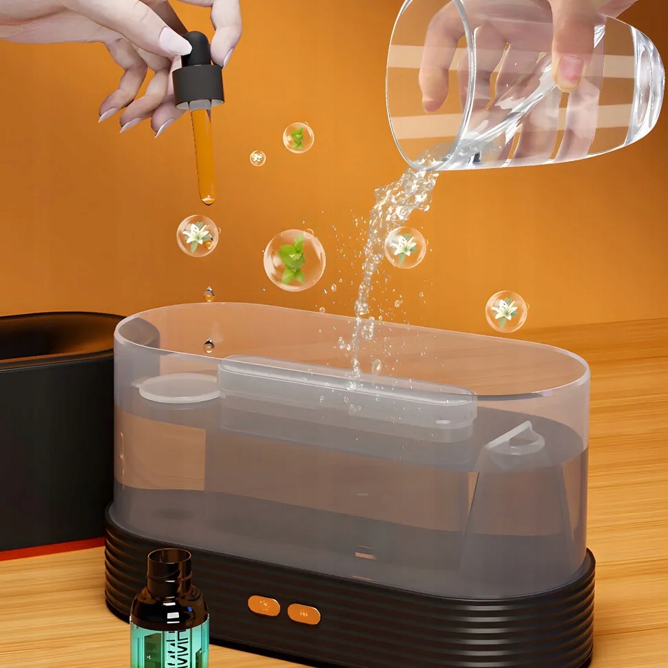 - УСТРОЙСТВО 3-в-1 - чрезвычайно тихий и портативный увлажнитель воздуха, поддерживающий должный уровень увлажненности пространства в квартире. Его современный внешний вид впишется в любой интерьер, а исходящий от него аромат придаст вашему дому нотку элегантности. Кроме того, устройство имеет встроенную светодиодную RGB-лампу с эффектом огня и имеет функцию ароматерапии.
