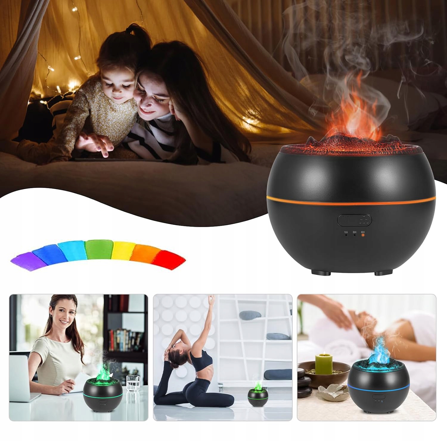 Это устройство работает как увлажнитель, ароматерапевтический диффузор и декоративная подсветка, что позволяет вам выбирать его в соответствии с вашими потребностями и индивидуальным подходом.
