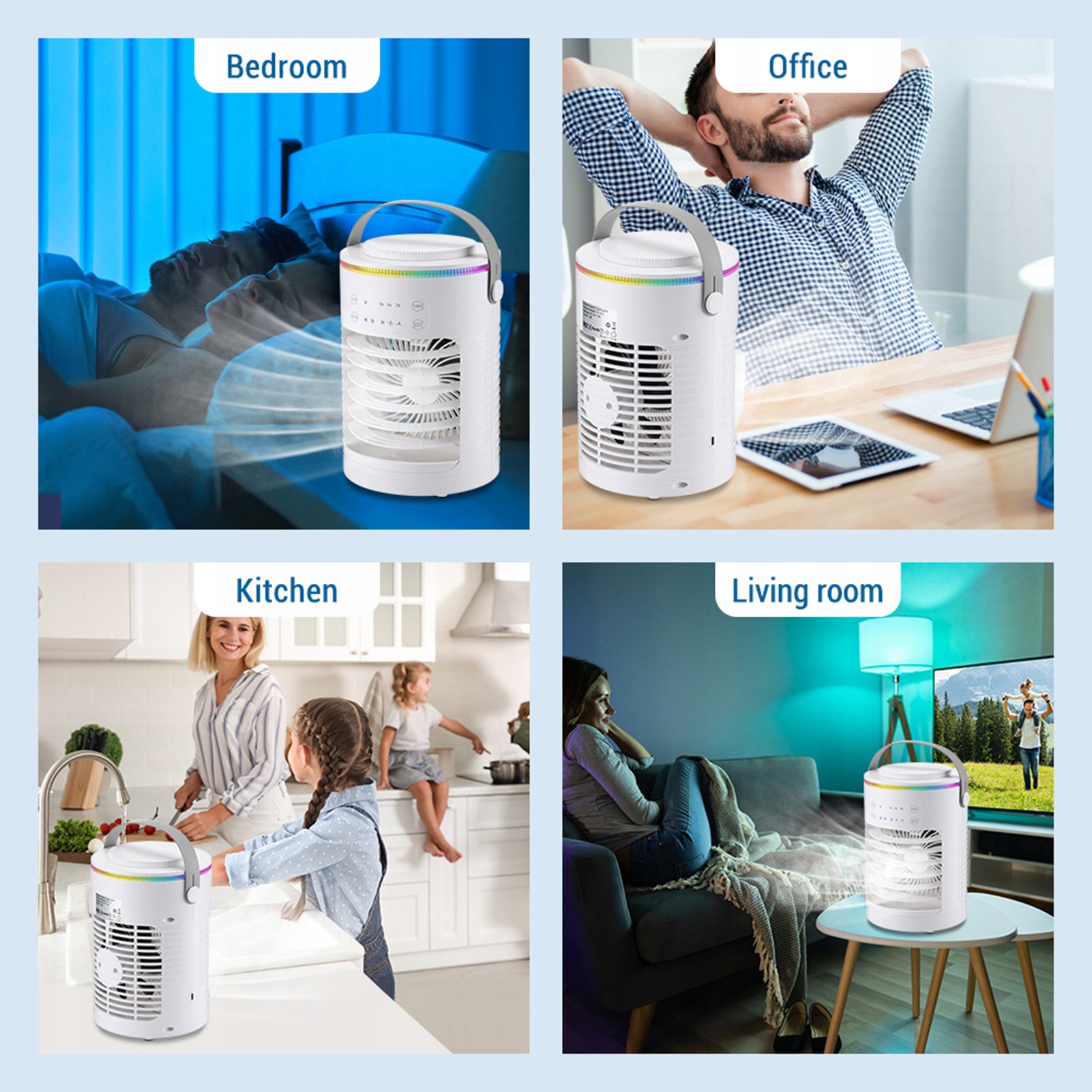 Этот воздухоохладитель, оснащенный высокоэффективным двигателем и уникальной конструкцией воздуховодов с двойными отверстиями для увлажнения тумана, может быстро снизить температуру окружающей среды до 65–75 градусов по Фаренгейту. Наслаждайтесь освежающим воздушным потоком, который эффективно борется с волнами жары, что делает его идеальным для различных применений, таких как дома, офисы, спальни, уличные палатки и походы.