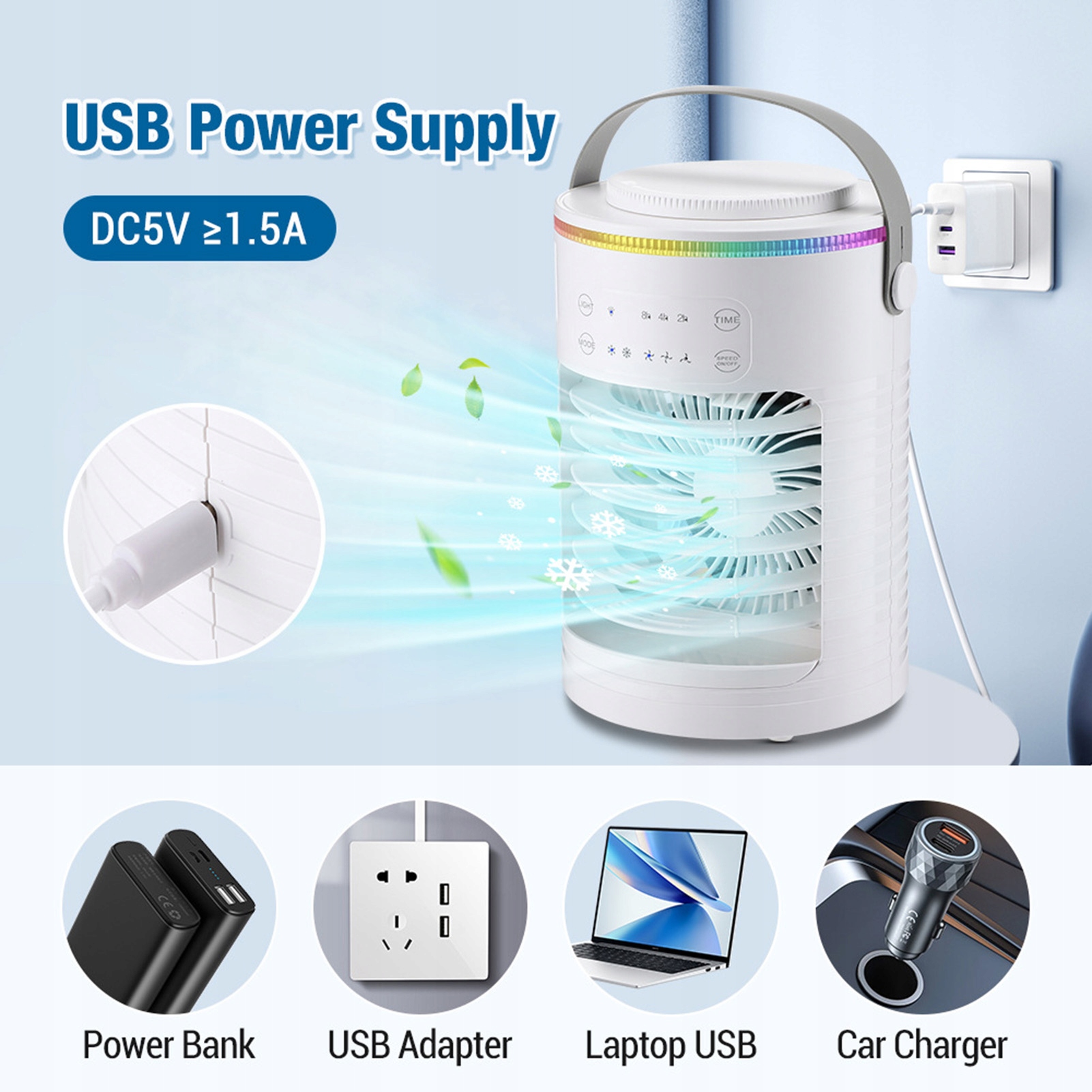 Этот портативный кондиционер, оснащенный герметичным резервуаром для воды емкостью 600 мл, обеспечивает непрерывную работу без частой дозаправки. Умная конструкция автоматически переключается в режим естественного ветра, когда вода заканчивается, обеспечивая бесперебойное охлаждение.