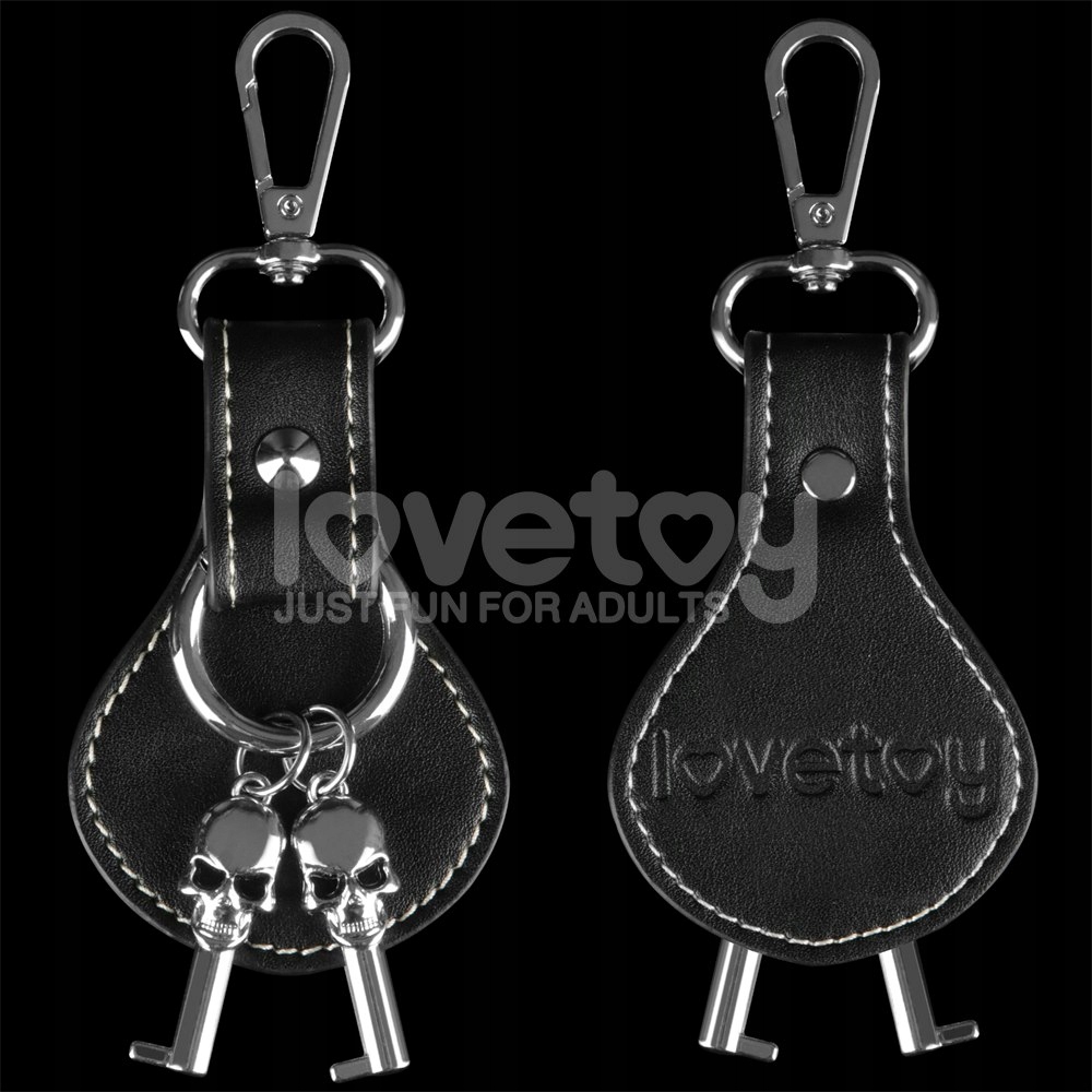 możesz je otworzyć na dwa sposoby: za pomocą doączonego klucza w kształcie czaszki lubezez naciśnięcie suwaka zabezpieczającego na boku kajdanek.