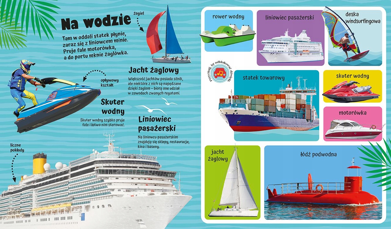 The book takes little readers on an unforgettable journey by various vehicles . Children will find simple poems about vehicles and machines and short curiosities. Целых 60 различных звуков являются отличительной особенностью публикации. Thanks to her, the toddler will find out what sounds the ambulance, excavator, tractor or plane make. Carefully selected photos are characterized by vivid colors.