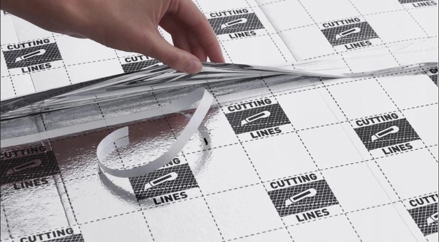 Подложка 3 в 1 – объединена с пароизоляционной фольгой, внахлест и самоклеющейся лентой.