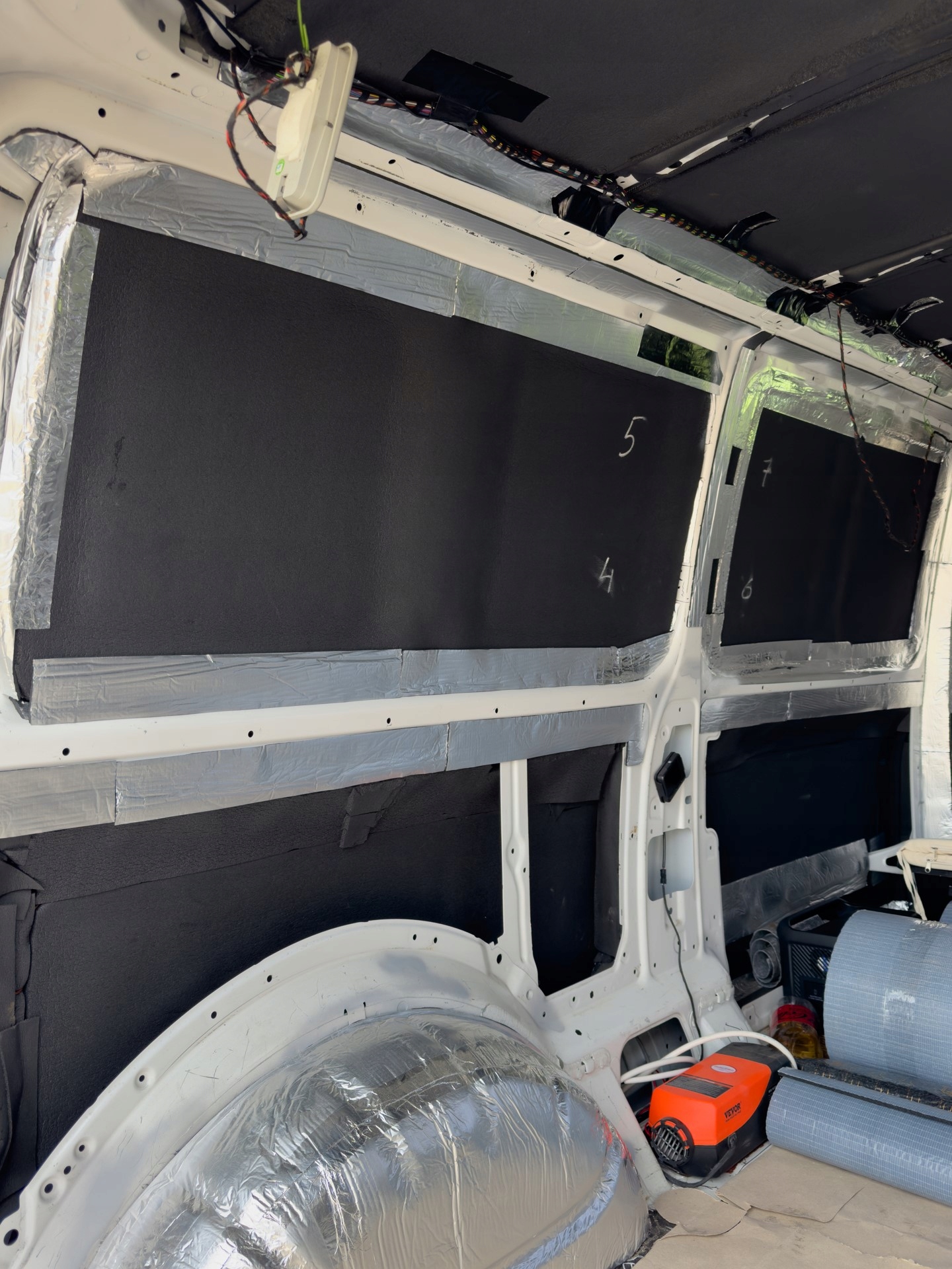 - Багажник с колесные арки: 3 м2 бутилового мата и 3 м2 пенопласта