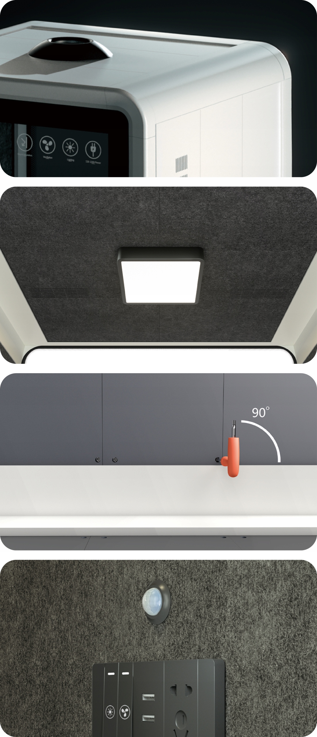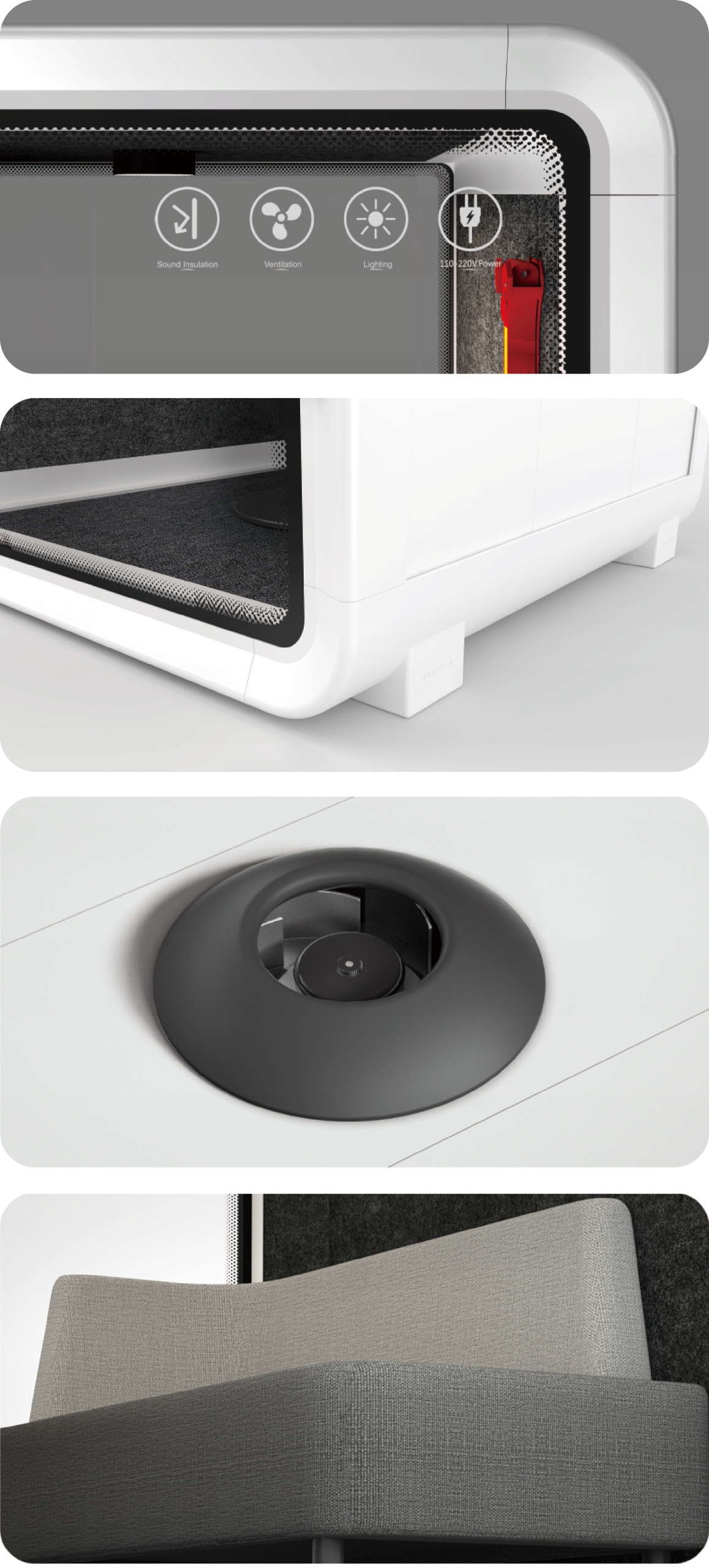 Современная звукоизоляционная многопользовательская акустическая кабина -это место, которое обеспечивает максимальный комфорт работы в современных интерьерах офисов открытого пространства, банков, офисов, аэропортов, отелей. Кабина предоставляет возможность провести телефонные звонки или телеконференции в благоприятных условиях, в которых вы можете сосредоточиться на разговоре и вести его, не беспокоя коллеги. Застекленная дверь и задняя часть кабины заставляют кабину выглядеть чрезвычайно легким и украшают интерьер, в котором она находится. Практическая акустическая кабина будет работать в основном в современном офисе, характеризуемом инновациями и очисткой современных решений, где это будет незаменимым местом для частных разговоров, телеконференций и деловых встреч. Кабина была изготовлена из высококачественного сырья, обеспечивающего адекватную звукоизоляцию. Внутренний дизайн и отделка побуждают вас использовать это удобное место, когда возникает необходимость.