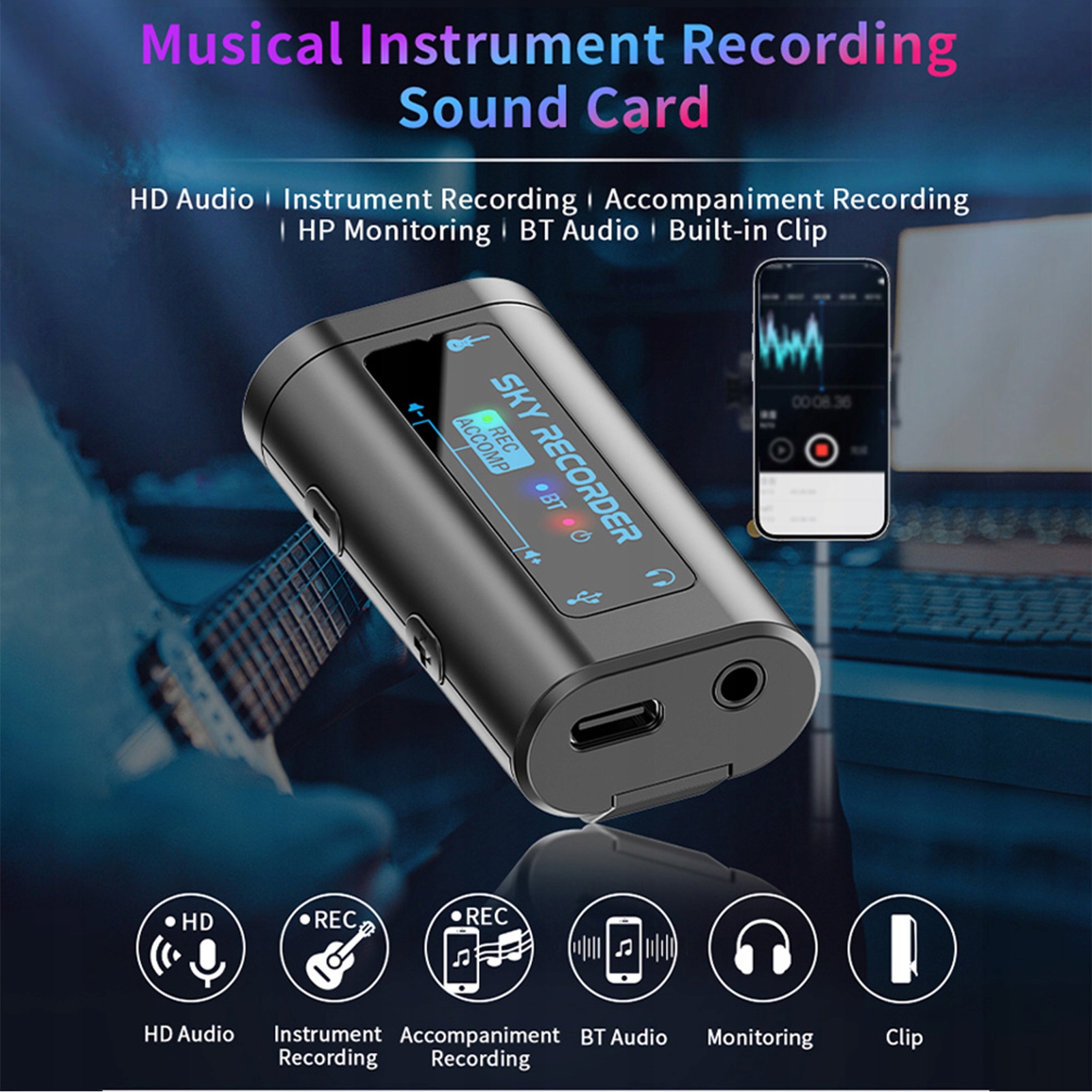 Функция: 1. Универсальный аудио -интерфейс: наш аудио -интерфейс был разработан как мини -звуковая карта записи, которая плавно поддерживает аккомпанемент BT, что обеспечивает легкую интеграцию со смартфоном или планшетами для трансляции и рекордной сеансы.