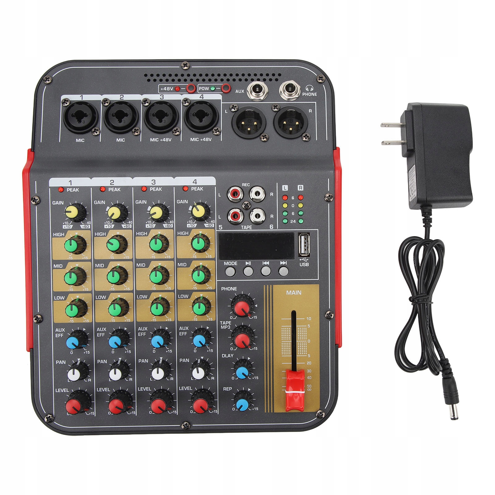 1. УНИВЕРСАЛЬНОЕ ПРИМЕНЕНИЕ: Наш мини-профессиональный микшерный пульт идеально подходит для свадеб, сценических выступлений, прямых трансляций и домашних сцен KTV и позволяет создавать сбалансированный и идеальный звуковой эффект. 2. ЗВУК БЕЗ ПОТЕРЬ: Наша микшерная консоль поддерживает звуковые устройства USB, обеспечивая мгновенный точный звук. Испытайте идеальное воспроизведение звука без каких-либо компромиссов. 3. ЗВУКОВОЙ ЧИП DSP: используется превосходный звуковой чип DSP, который эффективно решает такие проблемы, как низкий уровень громкости и шум, обеспечивая исключительное качество звука для ваших нужд. 4. ТОЧНАЯ НАСТРОЙКА: каждый моноканал оснащен 3-полосным эквалайзером, позволяющим точно настраивать вокал и музыку для достижения идеального звукового баланса. Кроме того, благодаря поддержке фантомного питания 48 В вы можете использовать через эту консоль различные микрофоны. 5. ШИРОКАЯ СОВМЕСТИМОСТЬ И Удобство для пользователя: Наша микшерная консоль обеспечивает мощную совместимость, легко подключаясь к различным звуковым устройствам. Он создан для простоты использования, что делает смешивание удобным и легким.