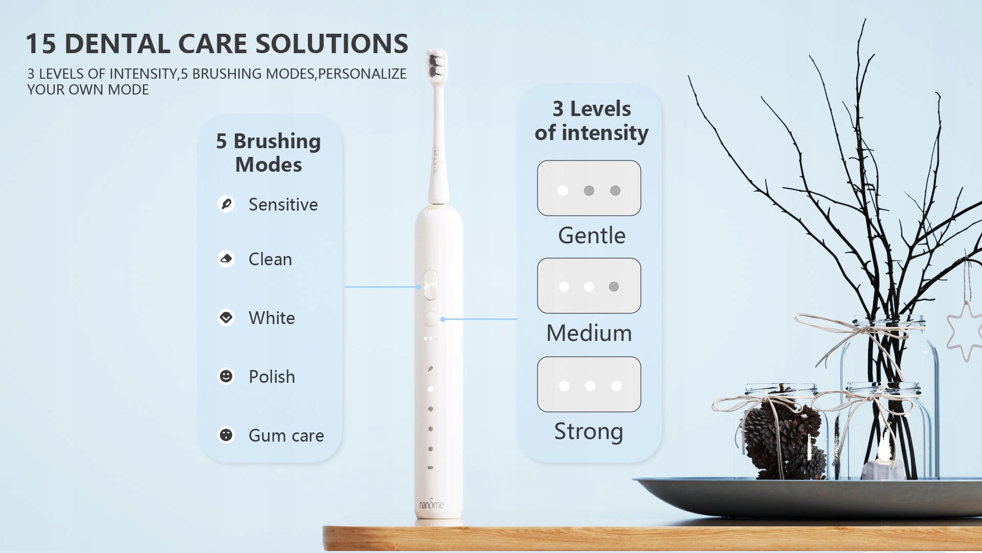 Позаботьтесь о здоровой и красивой улыбке с помощью звуковой зубной щетки Nandme NX7000. Эффективно удаляет зубной налет, ухаживает за чувствительными зубами и отбеливает их.