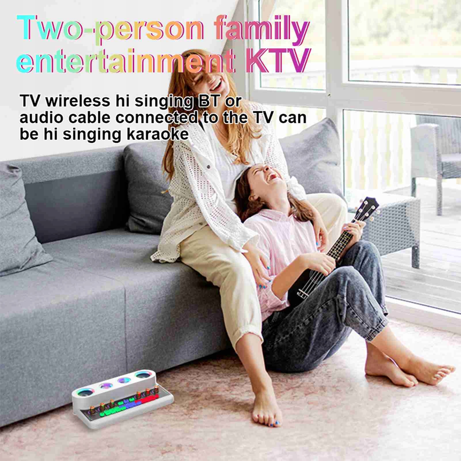 2. 【Самое высокое качество звука】 с 12 типами электронных звуков, 8 с теплым эффектом и не только не только, динамик позволяет вам независимо адаптировать высокие тона, бас и эхе, создавая идеальный эффект караоке и приятное удовольствие от уха до вечеринки, слушая музыку и пение.