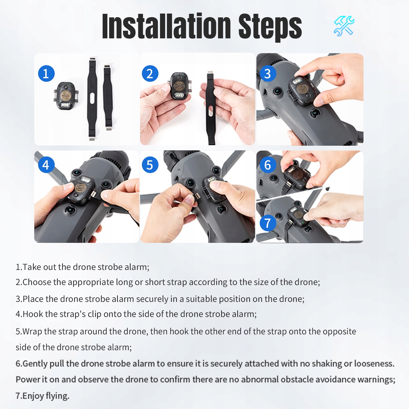 【Подходит для дронов DJI и двойной функциональности】Специально разработан для дронов DJI Mini 5 Pro, Mini 4 Pro, Mini 3 Pro, Mini 3, Air 3S, Air 3, Mavic 4 Pro, Avata 2, компактный размер и легкий вес позволяют легко установить стробоскопическую световую сигнализацию V2 на любые дроны, включая Avata, Mavic, Air и Air серии Mini. Это устройство выполняет две важные функции: оно действует как стробоскоп высокой видимости (видимый с расстояния 5 км в соответствии с требованиями Федерального управления гражданской авиации) при обычных полетах и мгновенно превращается в мощную систему сигнализации при обнаружении происшествия или опасности, что делает его незаменимым для обнаружения вашего дрона после происшествия.